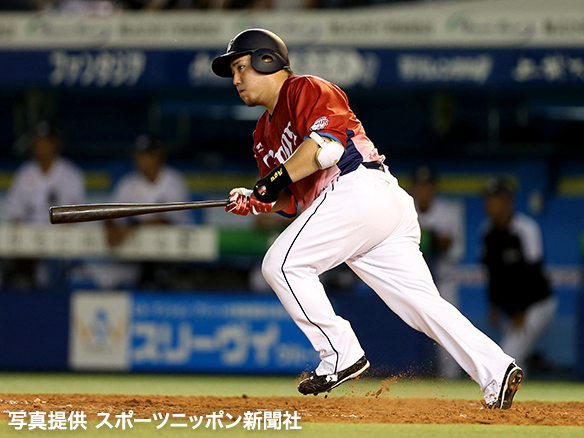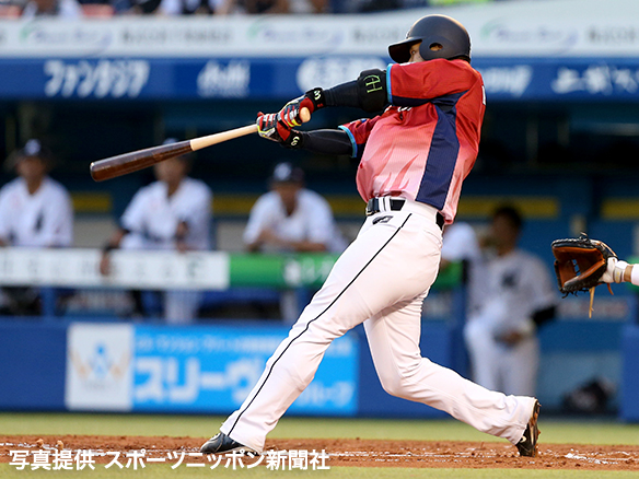 7番 外崎 左安 ランナー1塁 内角高めのシュートをレフトへ打ってヒット 1,2塁  |