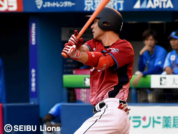 7番 外崎 二安 ランナー1塁 高めのカットボールをセカンドへ打ってヒット 1,2塁  |