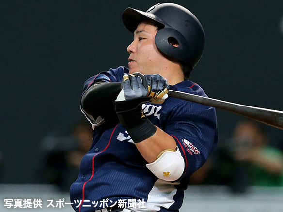 5番 山川 左安 外角のカーブをレフトへ打ってヒット 1塁  |
