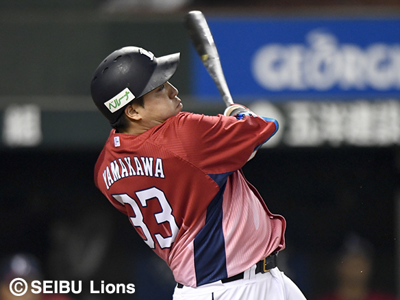 4番 山川 左飛 ランナー1,2塁 低めの変化球を打つもレフトフライ 1アウト |
