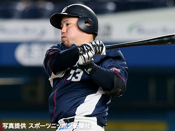 4番 山川 四球 フォアボールを選ぶ 1塁 |