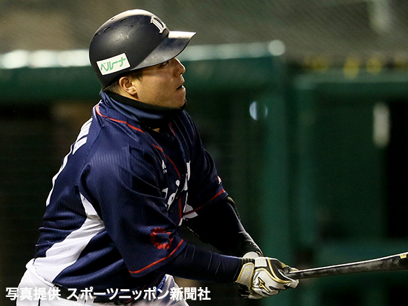 6番 外崎 中安 ランナー1,2塁 外角低めのスライダーをセンターへ打ってヒット |