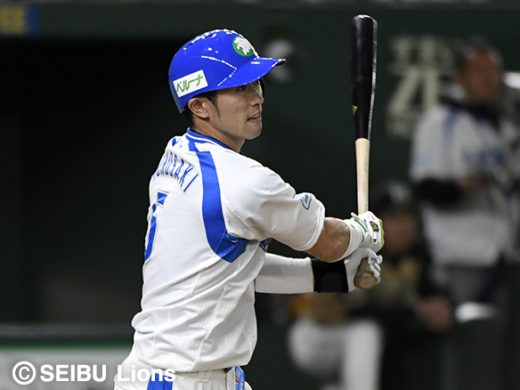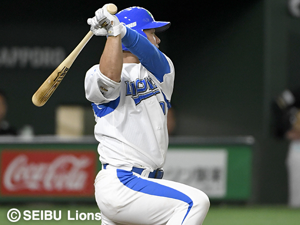 6番 外崎 左安 内角高めのスライダーをレフトへ打ってヒット 1塁 |