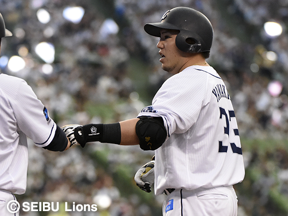 4番 山川 左本 カウント0-2からレフトスタンドへホームラン! 西7-3ロ ![]() 7