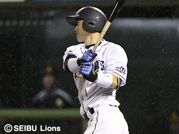 6番 外崎 中安 外角のストレートをセンターへ打ってヒット 1塁 |