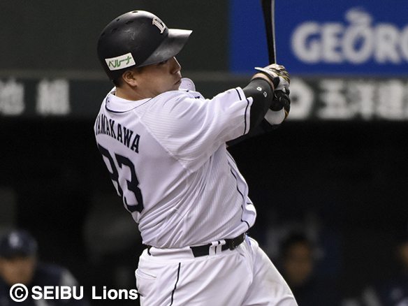 4番 山川 左安 ど真ん中のスライダーをレフトへ打ってヒット 1塁 |