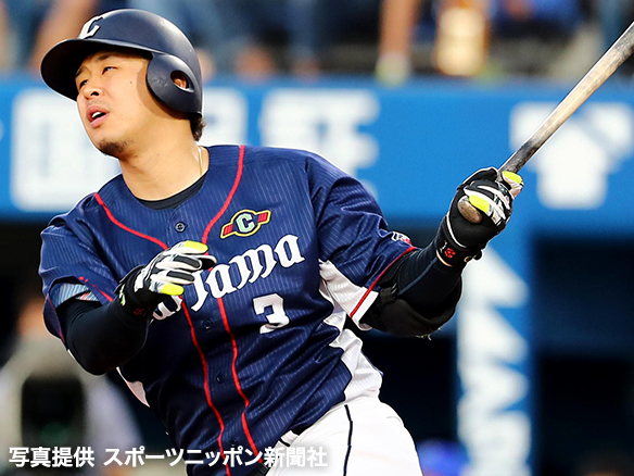 4番 山川 空三振 外角低めのスライダーを空振り三振 2アウト |