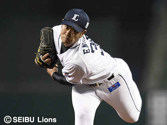 投手 チェン 4番 山川 空三振 内角高めのストレートを空振り三振 1アウト |