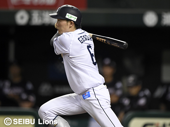 2番 源田 遊安 内角高めのストレートをショートへ打ってヒット 1塁 |