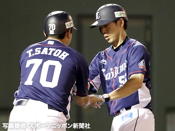 6番 外崎 左安 外角のチェンジアップをレフトへ打ってヒット 1塁 |