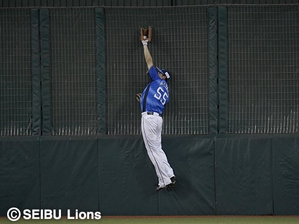 投手 岸 1番 秋山 左邪飛 ファウルフライを島内(左)が捕球してバッターアウト 1アウト |