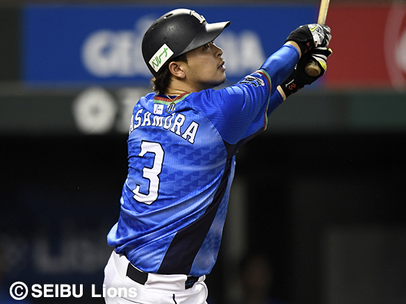 2番 源田 遊失 茂木(遊)の悪送球により出塁する 1塁 |