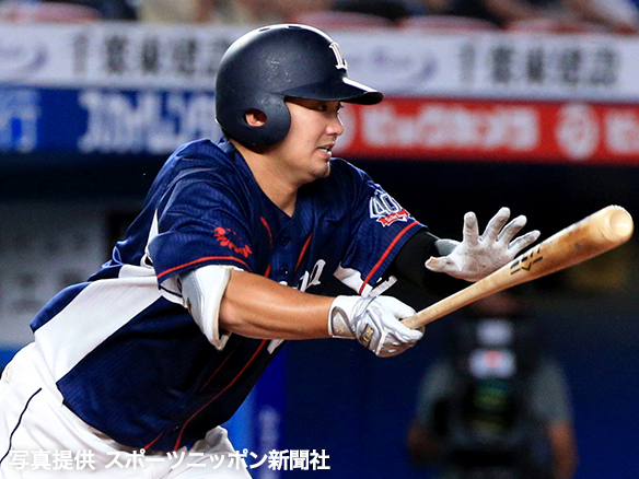 前の打者のネコ(金子侑選手)がアウトになったので、もう一度チャンスを広げようと、タイミングをとってしっかり振ることだけを考えました。
