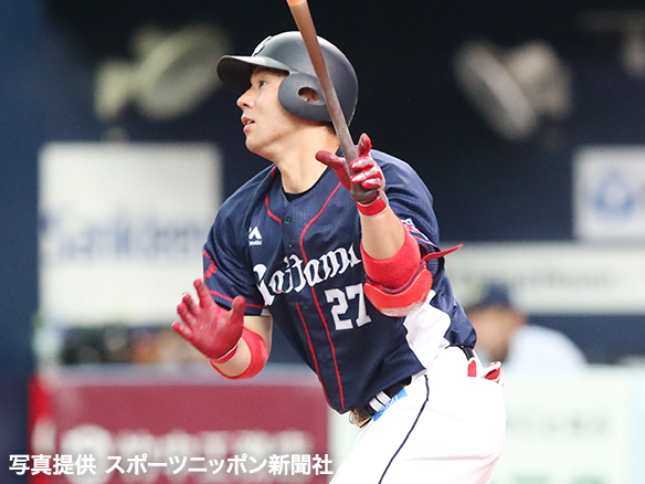 6番 外崎 遊安 外角のスライダーをショートへ打ってヒット 1塁 |