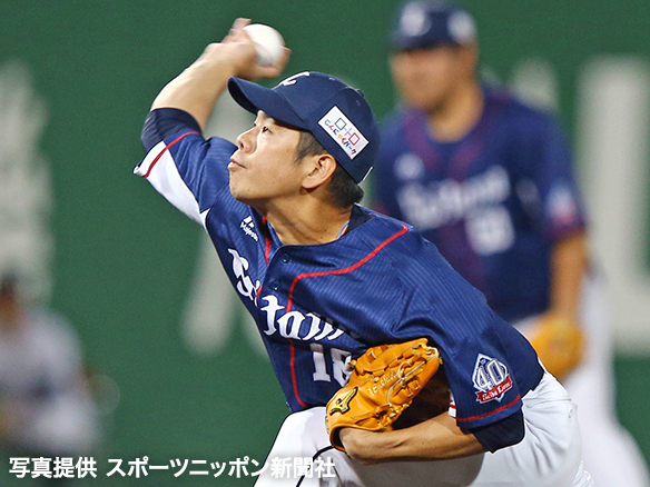 1番 金子侑 遊安 内角高めのスライダーをショートへ打ってヒット 1塁 |