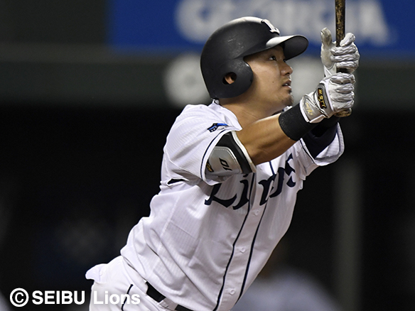 2番 源田 中安 ランナー2塁 高めのストレートをセンターへタイムリーヒット! 1塁 西8-1楽 ![]() 8