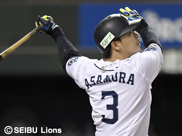 4番 山川 左安 外角のフォークをレフトへ打ってヒット 1塁 |