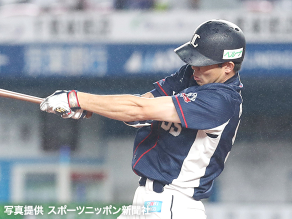 1番 秋山 空三振 低めのシンカーを空振り三振 |