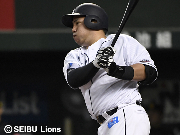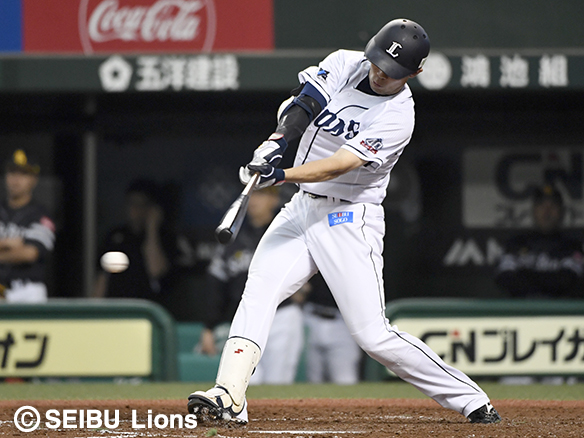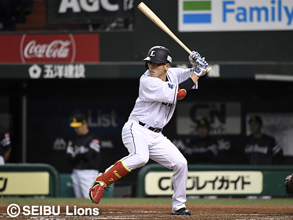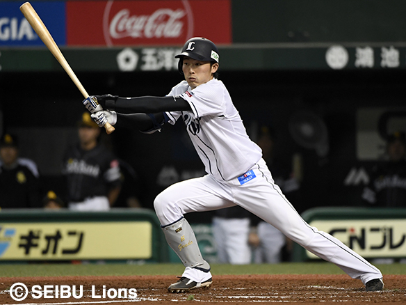2番 源田 左安 外角低めのスライダーをレフトへ打ってヒット 1塁 |