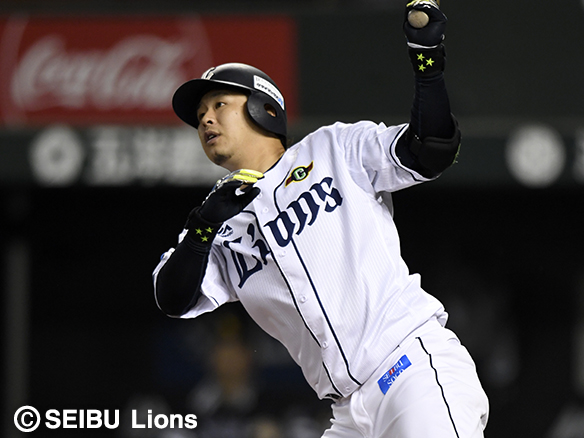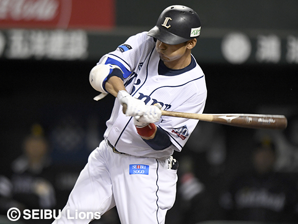 2番 源田 右安 ランナー1,2塁 内角高めのストレートをライトへ勝ち越しタイムリーヒット! 1,3塁 西4-3ソ ![]() 4