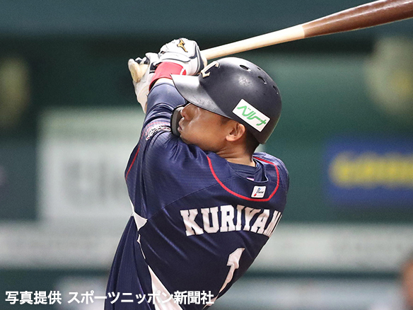 9番 甲斐 三安 外角のカットボールをサードへ打ってヒット 1塁 |