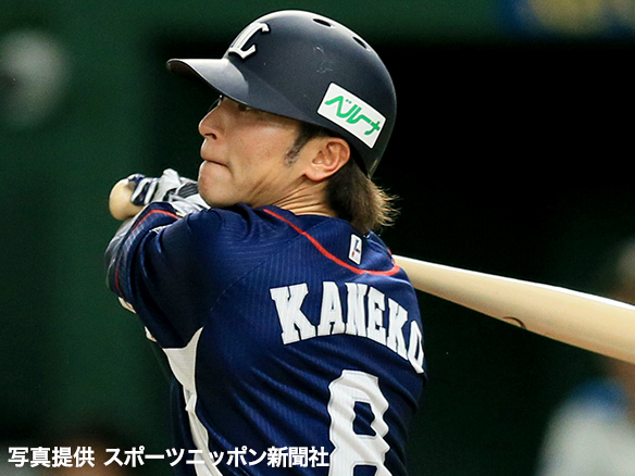1番 金子侑 左安 高めのカットボールをレフトへ打ってヒット 1塁 |