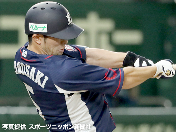6番 外崎 空三振 外角低めのスライダーを空振り三振 2アウト |