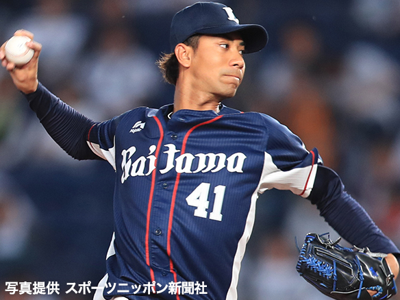 投手 二木 4番 山川 空三振 内角のストレートを空振り三振 1アウト  |