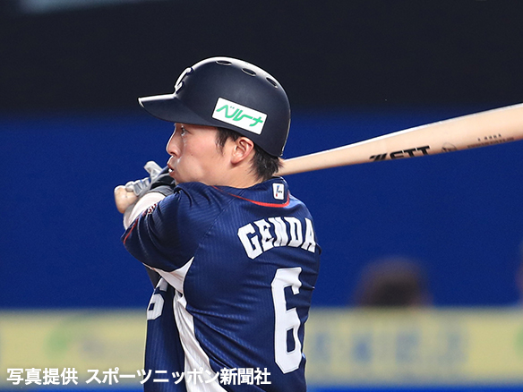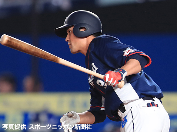 4番 山川 左安 内角のストレートをレフトへ打ってヒット 1塁  |