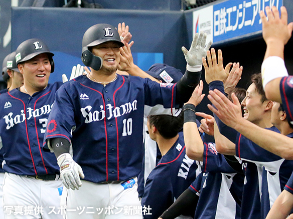 2番 外崎 中安 ランナー1,2塁 外角のカットボールをセンターへ先制タイムリーヒット! オ0-1西 |