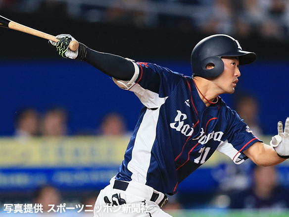 1番 荻野貴 左安 外角低めのスライダーをレフトへ打ってヒット 1塁 |