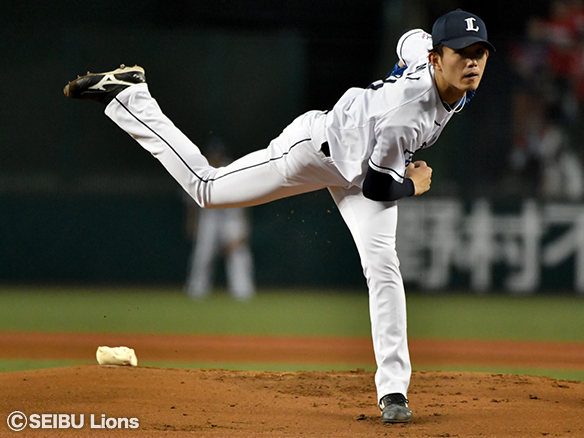 投手 野村 4番 山川 空三振 外角低めのカーブを空振り三振 1アウト |