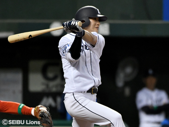 3番 外崎 中安 外角高めのフォークをセンターへ打ってヒット 1塁 |