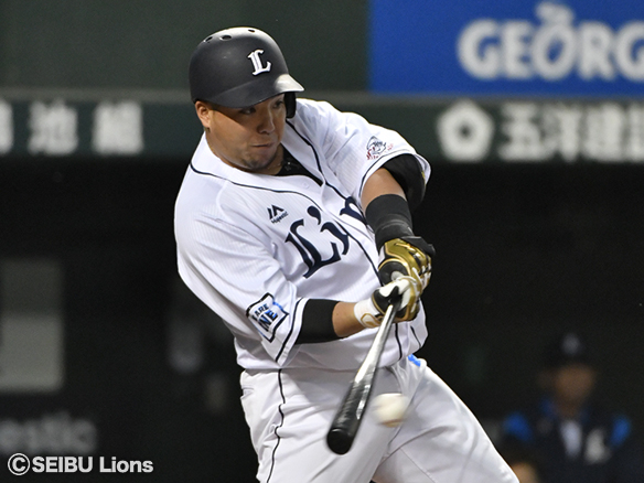 2番 源田 右安 内角低めのフォークをライトへ打ってヒット 1塁 |