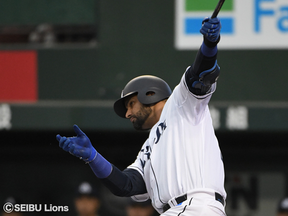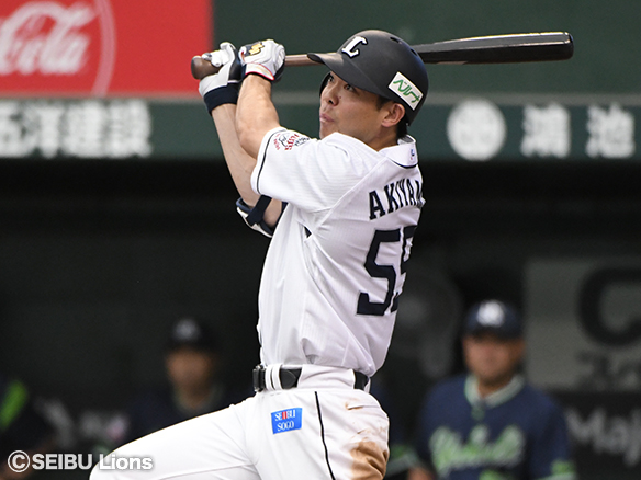 3番 外崎 中安 外角高めのストレートをセンターへ打ってヒット 1塁 |