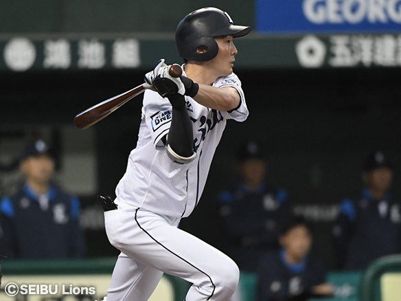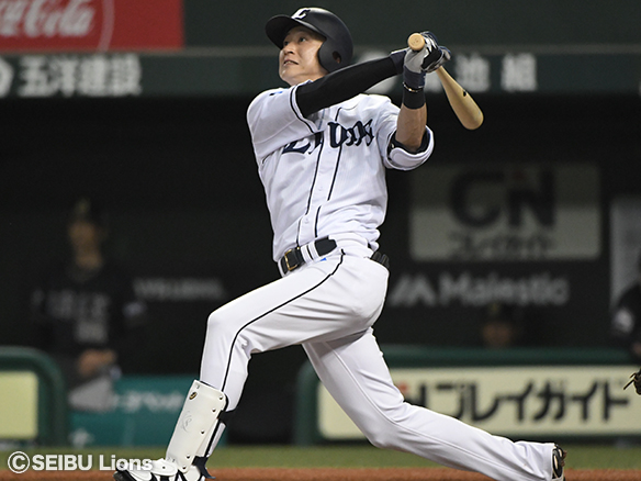 2番 源田 中安 外角低めのカーブをセンターへ打ってヒット 1塁 |