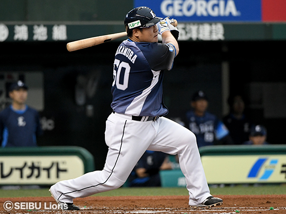 3番 外崎 左安 外角のカットボールをレフトへ打ってヒット 1塁 |