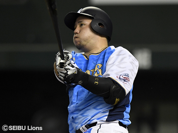 3番 外崎 中安 ランナー1塁 低めのシンカーをセンターへ打ってヒット 1,3塁 |