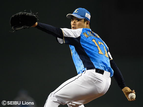 投手 松本航 1番 牧原 中飛 外角高めのシンカーを打つもセンターフライ 1アウト |