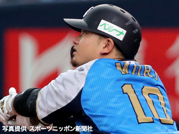 5番 モヤ 中安 満塁 高めのストレートをセンターへタイムリーヒット! 1,2塁 オ5-2西 ![]() 5