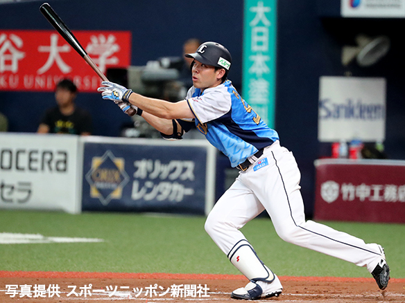 2番 外崎 右安 外角高めのストレートをライトへ打ってヒット 1塁 |