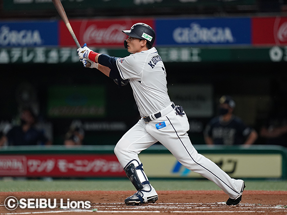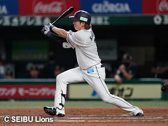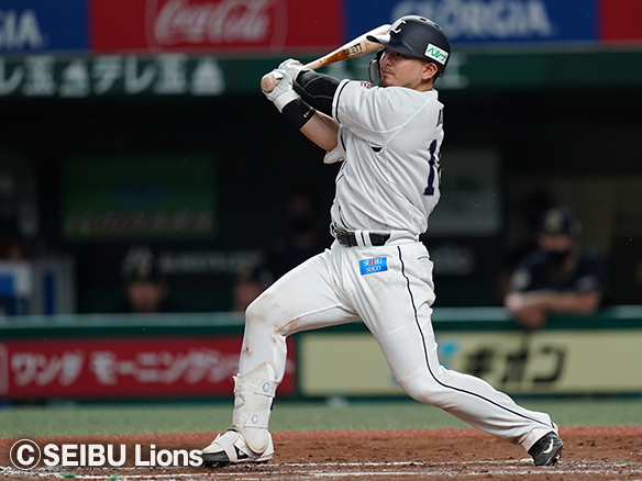 5番 外崎 左安 高めのカットボールをレフトへ打ってヒット 1塁 |