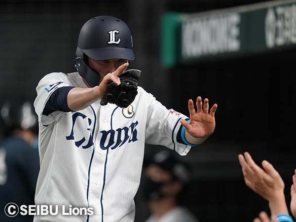 4番 山川 左安 ランナー3塁 外角のストレートをレフトへタイムリーヒット! 1塁 西5-8オ ![]() 5