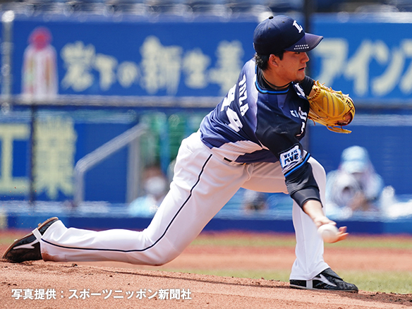 4番 山川 空三振 外角低めのスライダーを空振り三振 2アウト |