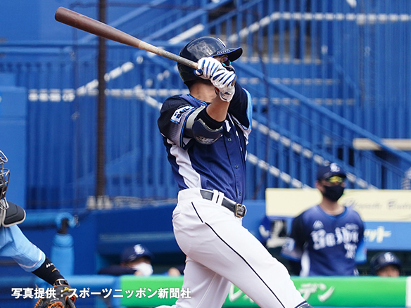 7番 安田 四球 フォアボールを選ぶ 1,2塁 |