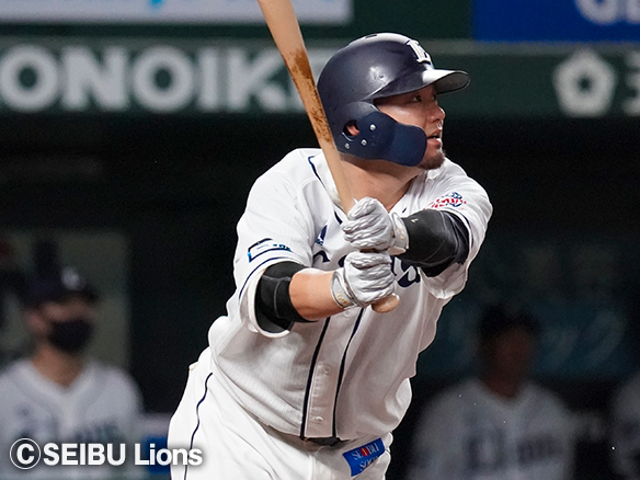 5番 外崎 中安 外角高めのストレートをセンターへ打ってヒット 1塁 |