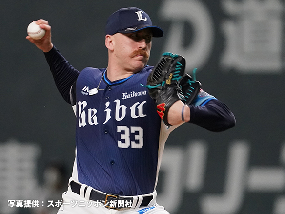 投手 バーヘイゲン 4番 山川 空三振 外角低めのスライダーを空振り三振 1アウト |