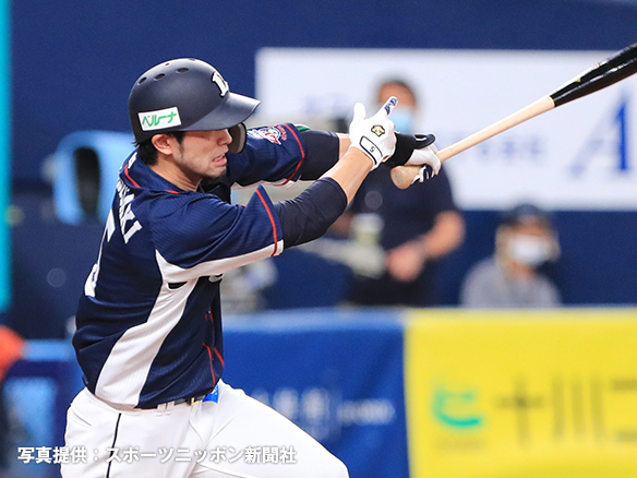 3番 外崎 右2 外角高めのフォークをライトへ打ってツーベース 2塁 |