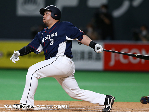 3番 西川 左安 ランナー1塁 低めのツーシームをレフトへ打ってヒット |