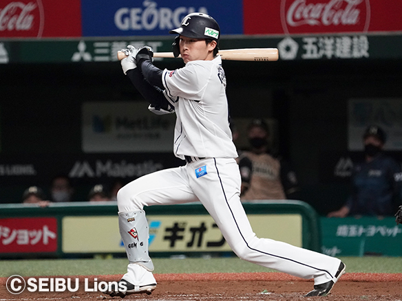 2番 源田 左安 内角のストレートをレフトへ打ってヒット 1塁 |